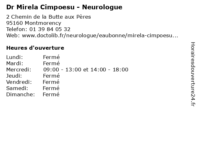 | Mercredi | 09:00-13:00 et 14:00-18:00 |