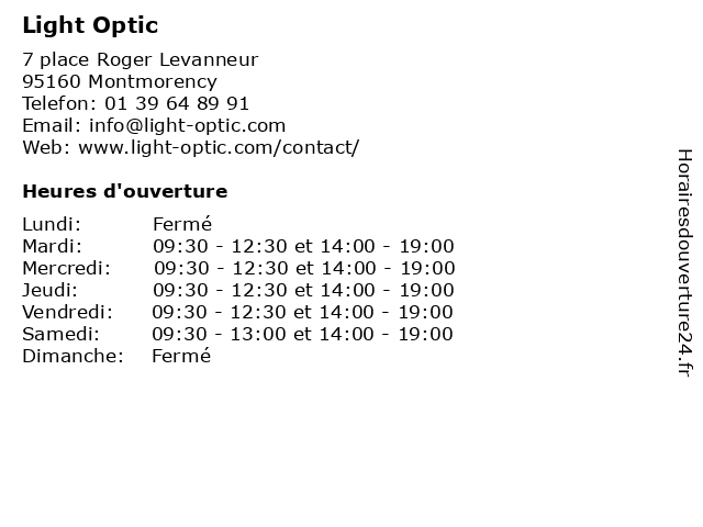 | Mercredi | 09:30-12:30 et 14:00-19:00 |