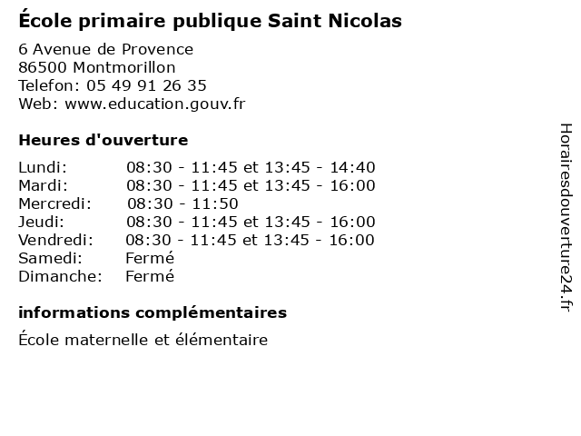 | Mardi | 08:30-11:45 et 13:45-16:00 |