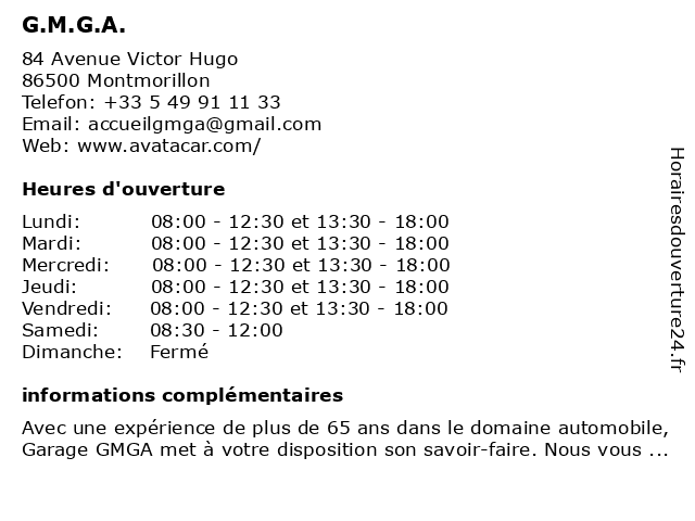 | Vendredi | 08:00-12:30 et 13:30-18:00 |