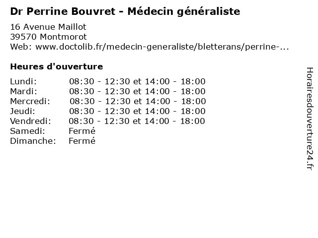 | Lundi | 08:30-12:30 et 14:00-18:00 |