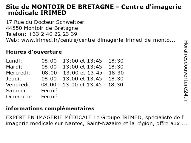 Termes de recherche pour Site de MONTOIR DE BRETAGNE - Centre d'imagerie médicale IRIMED:de, bretagne, médicale, centre, site, montoir, d'imagerie, irimed |