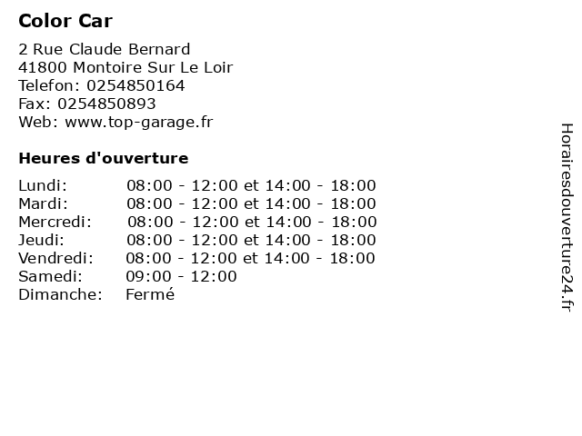 | Lundi | 08:00-12:00 et 14:00-18:00 |