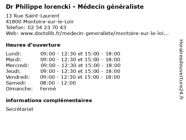 | Mercredi | 09:00-12:30 et 15:00-18:00 |