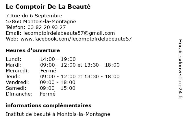 | Mardi | 09:00-12:00 et 13:30-18:00 |