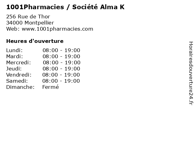 | Lundi | 08:00-19:00 |