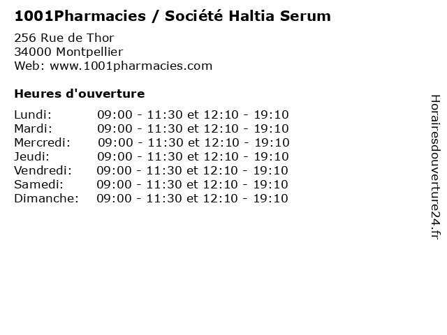 | Mardi | 09:00-11:30 et 12:10-19:10 |
