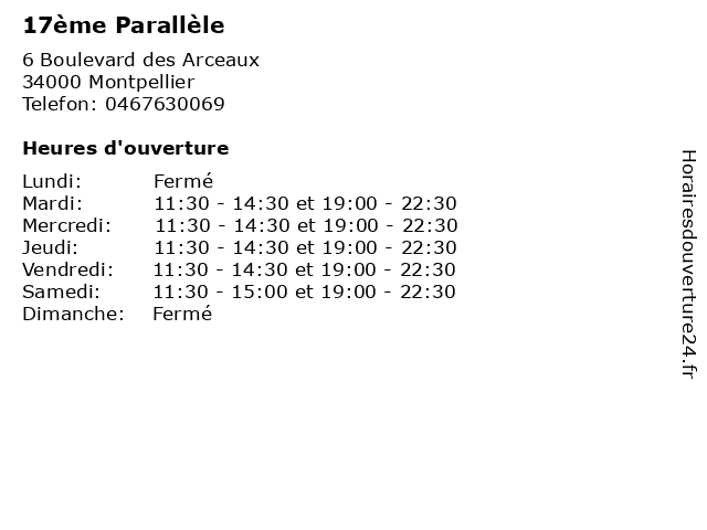 | Mardi | 11:30-14:30 et 19:00-22:30 |