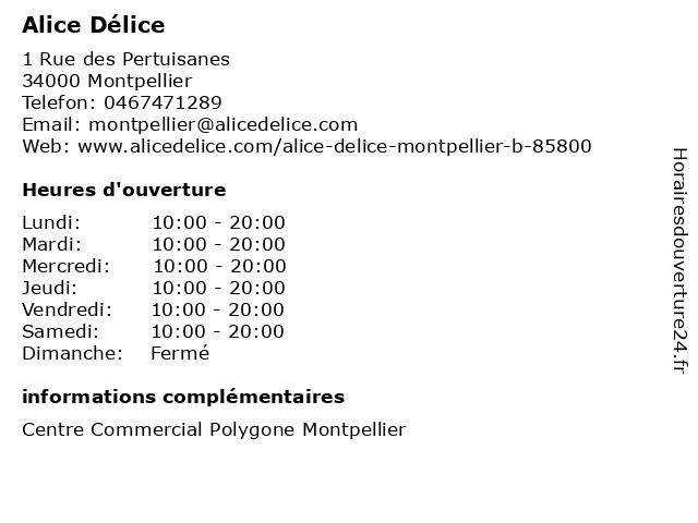 | Mercredi | 10:00-20:00 |