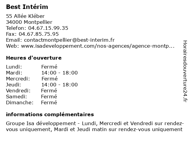1 ALFA INTERIM - Intérim et recrutement à Montpellier (Distance: 0,06 km) 38 Boulevard de Strasbourg, 34000 Montpellier alfa, et, interim, intérim, montpellier, recrutement 2 Axxis Intérim & Recrutement (Distance: 1,09 km) 241 avenue de la Pompignane, 34000 Montpellier agence, axxis, interim, intérim, recrutement 3 Leader Intérim (Distance: 1,37 km) 111 avenue de Theroigne de Méricourt, 34000 Montpellier agence, interim, intérim, leader 4 Agence d'intérim Manpower Montpellier BTP Recrutement (Distance: 1,40 km) 54 Avenue Georges Clemenceau, 34000 Montpellier agence de recrutement, agence intérim, agence pour l'emploi, cabinet de recrutement, cdi, intérim, recrutement 5 Missions Intérim (Horaires d'inscription) (Distance: 1,54 km) 25 avenue de Nîmes, 34000 Montpellier agence, d'inscription, horaires, interim, intérim, missions 6 Missions Intérim (Horaires d'ouverture) (Distance: 1,54 km) 25 avenue de Nîmes, 34000 Montpellier agence, d'ouverture, horaires, interim, intérim, missions |