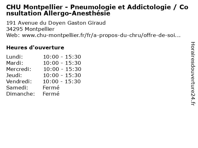 Termes de recherche pour CHU Montpellier - Pneumologie et Addictologie / Consultation Allergo-Anesthésie:et, montpellier, bureau, med, medecine, maladie, chu, traitement, pneumologie, médecin, consultation, dr, pratique, therapie, addictologie, anesthesie, allergo |