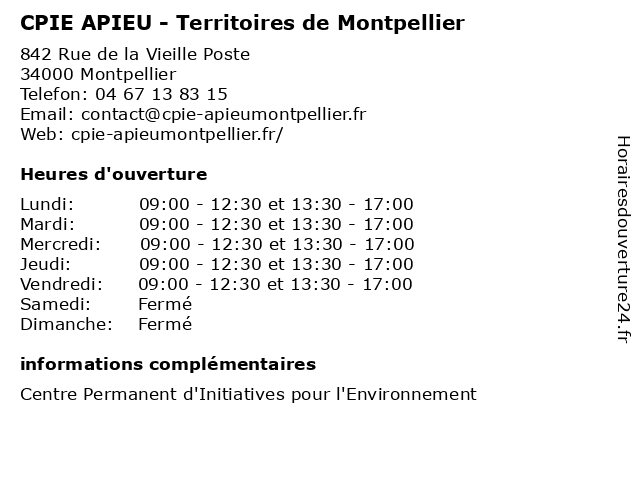 | Mercredi | 09:00-12:30 et 13:30-17:00 |