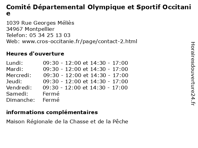 1 Comité de Ski - Cévennes Languedoc (Distance: 0,00 km) 1039 Rue Georges Melies, 34967 Montpellier ce, comité, cévennes, de, française, fédération, languedoc, ski 2 Comité de Cyclisme d'Occitanie - FFC Occitanie (Distance: 0,03 km) 1039 Rue Georges Méliès, 34967 Montpellier activité, clubs, comité, cyclisme, d'occitanie, de, ffc, occitanie 3 Comité Départemental Sports pour Tous (Distance: 0,03 km) 1039 Rue Georges Méliès, 34000 Montpellier comité, départemental, pour, sports, tous 4 Syndicat Départemental des Chirurgiens-Dentistes - Hérault (Distance: 1,15 km) 285 rue Alfred Nobel, 34000 Montpellier cabinet dentaire, chirurgiens, de, dentistes, des, départemental, désinfection, hérault, l'hérault, radiologie, stérilisation, syndicat 5 Conseil Départemental des sages-femmes de l'Hérault (Distance: 1,15 km) 285 rue Alred Nobel, 34000 Montpellier conseil, de, des, départemental, femmes, hérault, l', l'hérault, sages, sages-femme, service 6 Comité pour une Répartition Équitable de l'Emploi et des Revenus CREER - la Maison des Chômeurs (Distance: 3,61 km) 4 Rue Levat, 34000 Montpellier chômeurs, comité, creer, de, des, et, l'emploi, la, maison, pour, revenus, répartition, une, équitable |