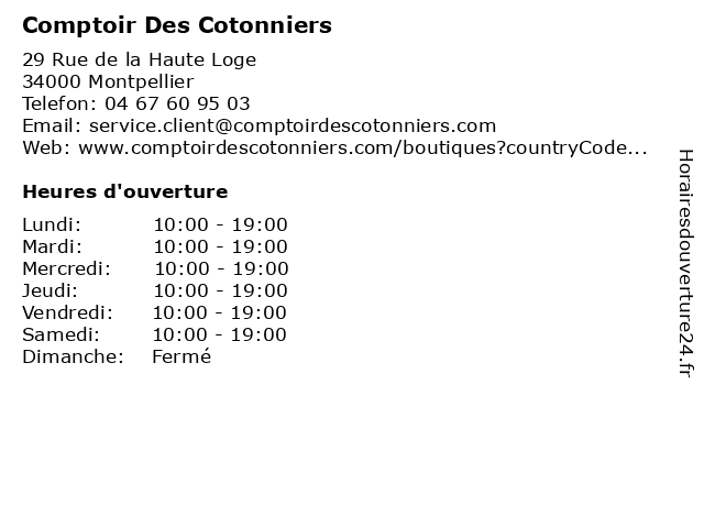 | Mercredi | 10:00-19:00 |