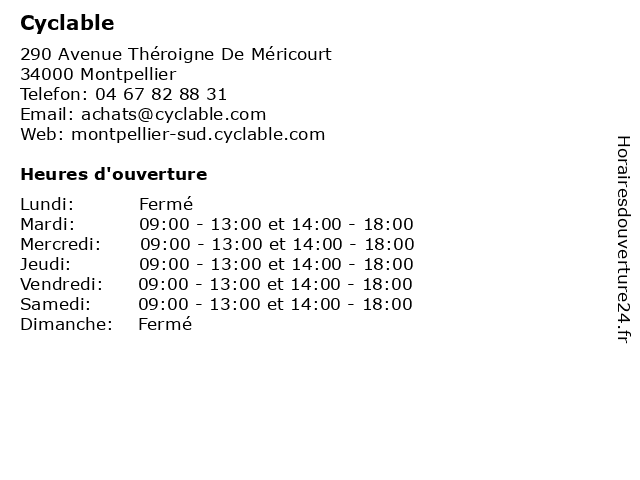 | Mercredi | 09:00-13:00 et 14:00-18:00 |