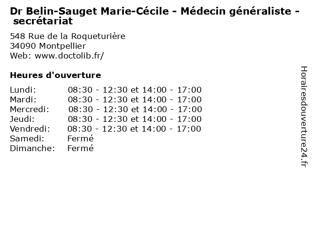 | Lundi | 08:30-12:30 et 14:00-17:00 |