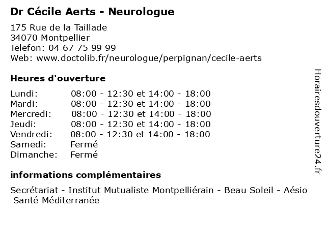 | Mercredi | 08:00-12:30 et 14:00-18:00 |