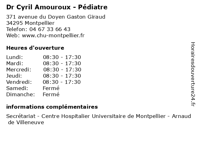 1 Dr Cyril Manzanera - Psychiatre (Distance: 0,00 km) 371 avenue du Doyen Gaston Giraud, 34000 Montpellier consultation, cyril, docteur, dr, manzanera, med, médecin, psychiatre, traitement 2 Dr Dora Janka - Pédiatre (Distance: 0,00 km) 371 avenue du Doyen Gaston Giraud, 34295 Montpellier consultation, docteur, dora, dr, janka, med, médecin, médecine, pédiatre, traitement 3 Dr Stefan Matecki - Pédiatre (Distance: 0,00 km) 371 avenue du Doyen Gaston Giraud, 34295 Montpellier consultation, docteur, dr, matecki, med, médecin, médecine, pédiatre, stefan, traitement 4 Dr Emeric Goudard - Pédiatre (Distance: 0,00 km) 371 avenue du Doyen Gaston Giraud, 34295 Montpellier consultation, docteur, dr, emeric, goudard, med, médecin, médecine, pédiatre, traitement 5 Dr Nicolas Sirvent - Pédiatre (Distance: 0,00 km) 371 avenue du Doyen Gaston Giraud, 34295 Montpellier consultation, docteur, dr, med, médecin, médecine, nicolas, pédiatre, sirvent, traitement 6 Dr Anne Sirvent - Pédiatre (Distance: 0,00 km) 371 avenue du Doyen Gaston Giraud, 34295 Montpellier anne, consultation, docteur, dr, med, médecin, médecine, pédiatre, sirvent, traitement |