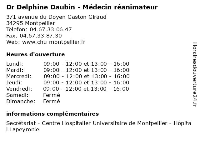 1 Dr Vincent Brunot - Médecin réanimateur (Distance: 0,00 km) 371 avenue du Doyen Gaston Giraud, 34295 Montpellier brunot, consultation, docteur, dr, med, médecin, médecine, réanimateur, traitement, vincent 2 Pr Boris Jung - Médecin réanimateur (Distance: 0,00 km) 371 avenue du Doyen Gaston Giraud, 34295 Montpellier boris, consultation, docteur, jung, med, médecin, médecine, pr, réanimateur, traitement 3 Dr Philippe Corne - Médecin réanimateur (Distance: 0,00 km) 371 avenue du Doyen Gaston Giraud, 34295 Montpellier consultation, corne, docteur, dr, med, médecin, médecine, philippe, réanimateur, traitement 4 Dr Sonia Machado - Médecin réanimateur (Distance: 0,00 km) 371 avenue du Doyen Gaston Giraud, 34295 Montpellier consultation, docteur, dr, machado, med, médecin, médecine, réanimateur, sonia, traitement 5 Dr Noémie Besnard - Médecin réanimateur (Distance: 0,00 km) 371 avenue du Doyen Gaston Giraud, 34295 Montpellier besnard, consultation, docteur, dr, med, médecin, médecine, noemie, noémie, réanimateur, traitement 6 Maître Delphine Adde-Soubra - Avocate (Distance: 2,37 km) 60 Place Jacques Mirouze, 34000 Montpellier adde, avocate, avocats, civils, delphine, droits, juridiques, maître, soubra |
