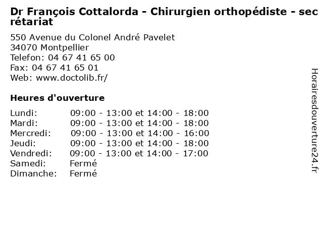 | Lundi | 09:00-13:00 et 14:00-18:00 |