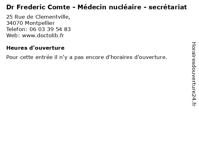 | Appeler Dr Frederic Comte - Médecin nucléaire - secrétariat | |