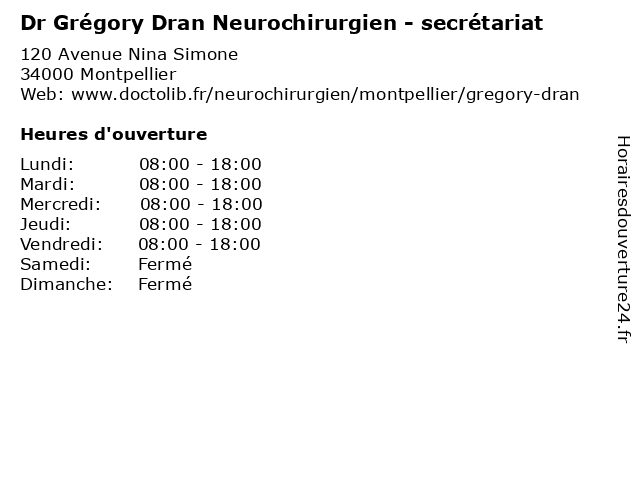 | Lundi | 08:00-18:00 |