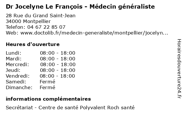 Termes de recherche pour Dr Jocelyne Le François - Médecin généraliste:le, francois, med, medecine, secretariat, traitement, généraliste, docteur, médecin, consultation, dr, jocelyne |