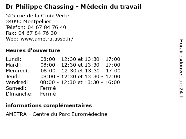 | Jeudi | 08:00-12:30 et 13:30-17:00 |