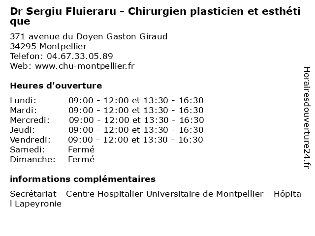 1 Dr Christian Herlin - Chirurgien plasticien et esthétique (Distance: 0,00 km) 371 avenue du Doyen Gaston Giraud, 34295 Montpellier chirurgien, christian, consultation, docteur, dr, esthétique, et, herlin, med, médecin, médecine, plasticien, traitement 2 Dr Farid Bekara - Chirurgien plasticien et esthétique (Distance: 0,00 km) 371 avenue du Doyen Gaston Giraud, 34295 Montpellier bekara, chirurgien, consultation, docteur, dr, esthétique, et, farid, med, médecin, médecine, plasticien, traitement 3 Dr Julien Gibrila - Chirurgien plasticien et esthétique (Distance: 0,00 km) 371 avenue du Doyen Gaston Giraud, 34295 Montpellier chirurgien, consultation, docteur, dr, esthétique, et, gibrila, julien, med, médecin, médecine, plasticien, traitement 4 Dr Florian Boissière - Chirurgien plasticien et esthétique (Distance: 0,00 km) 371 avenue du Doyen Gaston Giraud, 34295 Montpellier boissière, chirurgien, consultation, docteur, dr, esthétique, et, florian, med, médecin, médecine, plasticien, traitement 5 Dr Elena Ciucur - Chirurgien plasticien et esthétique (Distance: 0,00 km) 371 avenue du Doyen Gaston Giraud, 34295 Montpellier chirurgien, ciucur, consultation, docteur, dr, elena, esthétique, et, med, médecin, médecine, plasticien, traitement 6 Dr. Granier Pascal - Chirurgien esthétique et plasticien (Distance: 2,65 km) 8 Rue de la Valfère, 34000 Montpellier chirurgien, docteur, dr., esthétique, et, granier, medecins, pascal, plasticien, sante  |