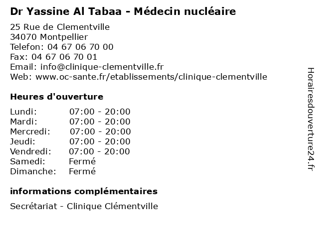 | Vendredi | 07:00-20:00 |