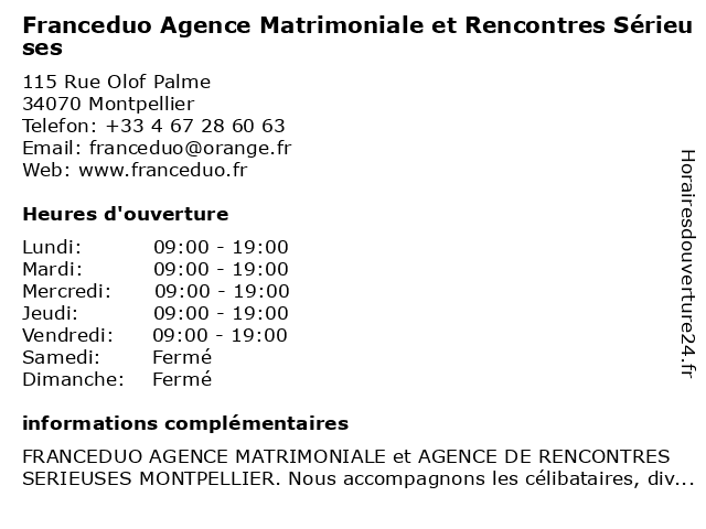 FRANCEDUO AGENCE MATRIMONIALE et AGENCE DE RENCONTRES SERIEUSES MONTPELLIER. Nous accompagnons les célibataires, divorcés(e), veufs(e) qui souhaitent construire une relation stable et durable. Tr...