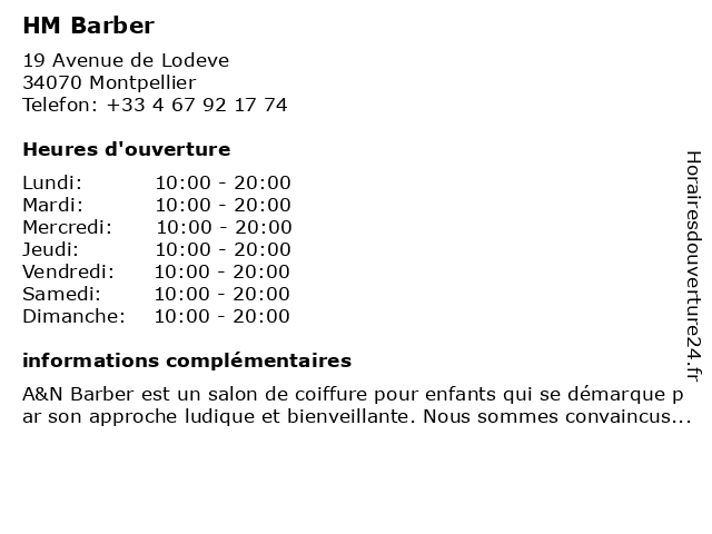 2 Barber Shop (Distance: 2,15 km) . Route de Ganges, 34980 St. Clément de Rivière barber, cafe, enfants, homme, mode femme, restaurant, servicies, shop 3 Barber-Mixte (Distance: 2,51 km) 710 Avenue du Pirée, 34000 Montpellier barber, beauté, coiffure, coiffures, coloristes, mixte 5 Barber Shop (Distance: 2,89 km) . Allée de la Condamine, 34430 St Jean De Vedas barber, cafe, deco, enfants, homme, maison, mode femme, restaurant, service, shop 6 W Barber Lounge (Distance: 2,89 km) 779 Rue de Saint-Hilaire, 34000 Montpellier barber, beauté, coiffure, coiffures, coloristes, lounge |