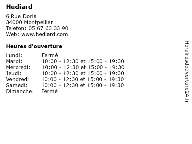 | Mardi | 10:00-12:30 et 15:00-19:30 |