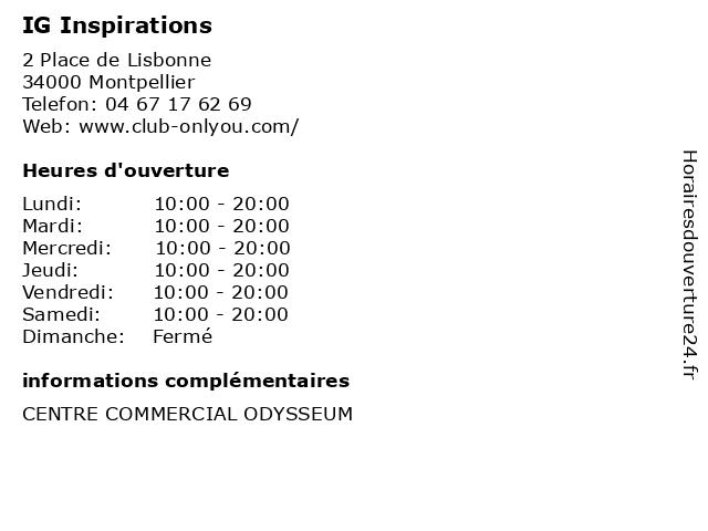 | Lundi | 10:00-20:00 |