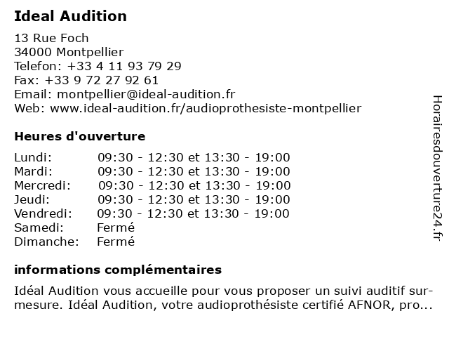 | Mardi | 09:30-12:30 et 13:30-19:00 |