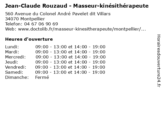 | Lundi | 09:00-13:00 et 14:00-19:00 |