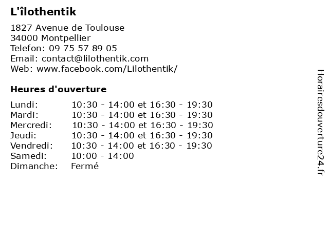 | Lundi | 10:30-14:00 et 16:30-19:30 |