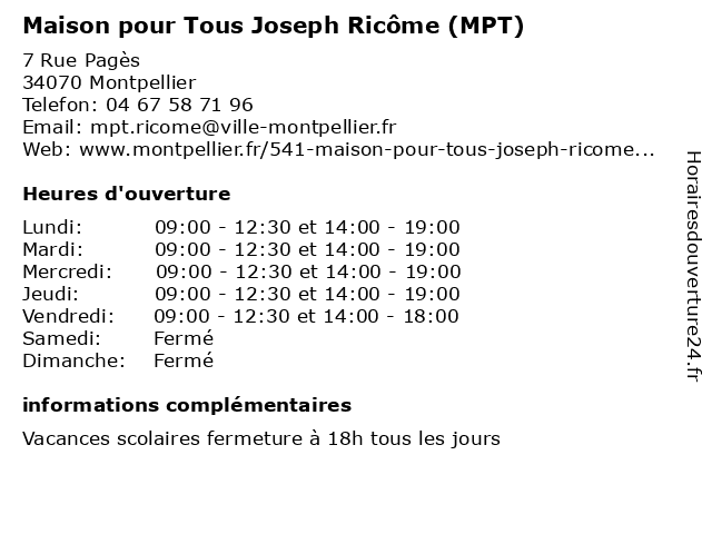 | Mercredi | 09:00-12:30 et 14:00-19:00 |