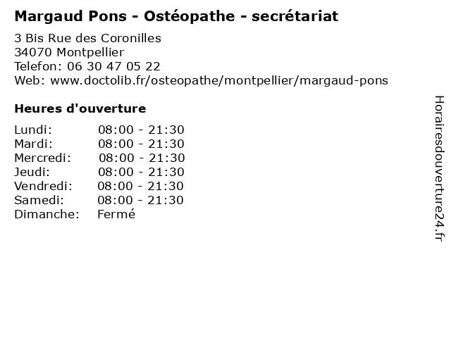 Termes de recherche pour Margaud Pons - Ostéopathe - secrétariat:medecine, pons, secretariat, docteur, médecin, ostéopathe, margaud |