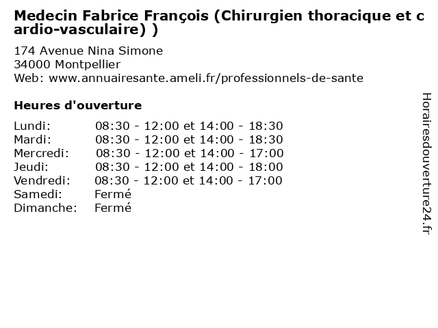 | Lundi | 08:30-12:00 et 14:00-18:30 |