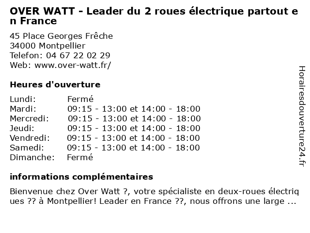 | Samedi | 09:15-13:00 et 14:00-18:00 |