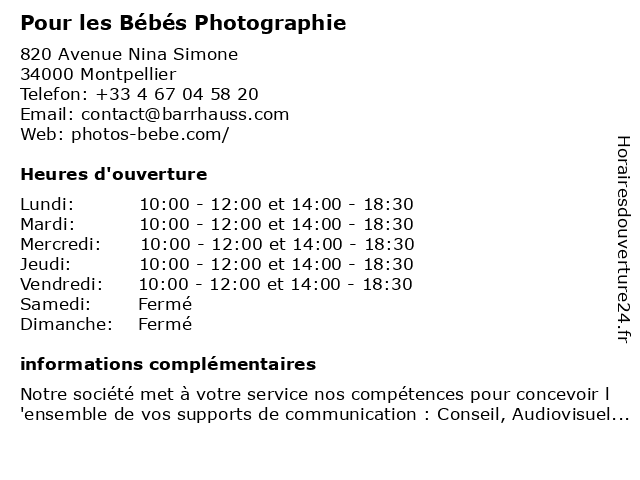 | Mercredi | 10:00-12:00 et 14:00-18:30 |
