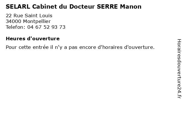 | Appeler SELARL Cabinet du Docteur SERRE Manon | |