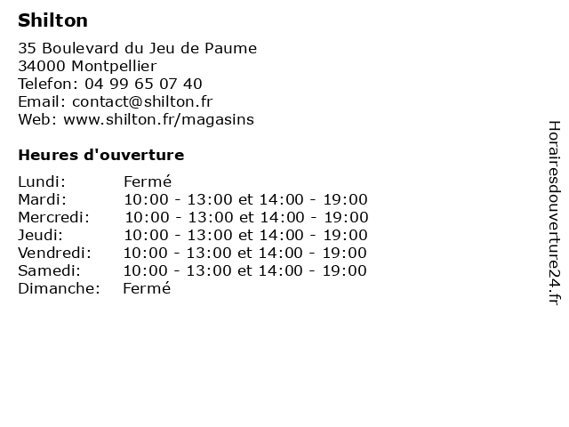 | Mardi | 10:00-13:00 et 14:00-19:00 |