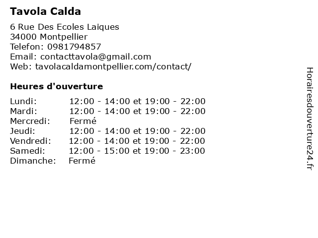 | Mardi | 12:00-14:00 et 19:00-22:00 |