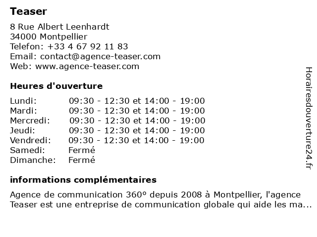Agence de communication 360° depuis 2008 à Montpellier, l'agence Teaser est une entreprise de communication globale qui aide les marques à se créer, à se développer et à prospérer depuis ...