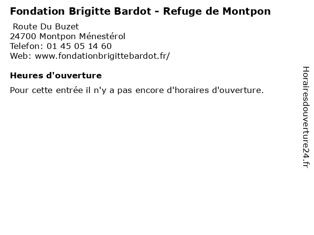 | Appeler Fondation Brigitte Bardot - Refuge de Montpon | |