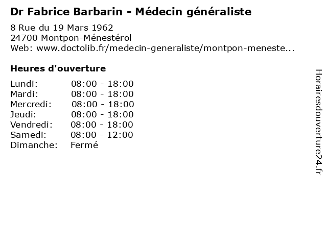 | Lundi | 08:00-18:00 |