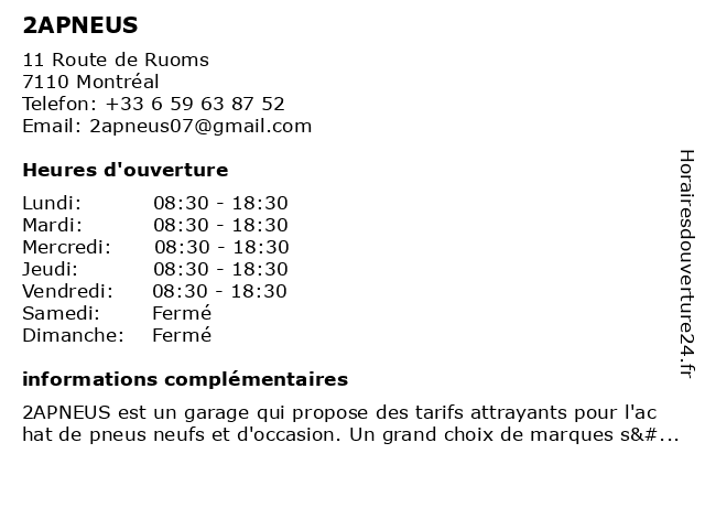 2APNEUS est un garage qui propose des tarifs attrayants pour l'achat de pneus neufs et d'occasion. Un grand choix de marques s'offre à vous. Nous sommes partenaires d'allopneus, 1001pneus, 1...