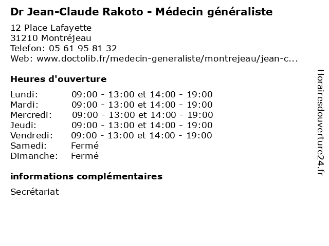 | Lundi | 09:00-13:00 et 14:00-19:00 |